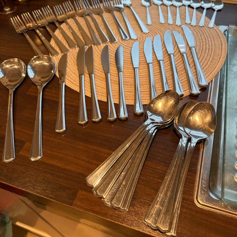 IKEA bestikksett i rustfritt stål. Settet består av kniver, gafler og spiseskjeer i ensartet, enkelt design. Bestikket passer til daglig bruk ved spisebordet og kan brukes til ulike typer måltider. Materialet er rustfritt stål med blank overflate. Egnet til bruk på kjøkken og i spisestue.