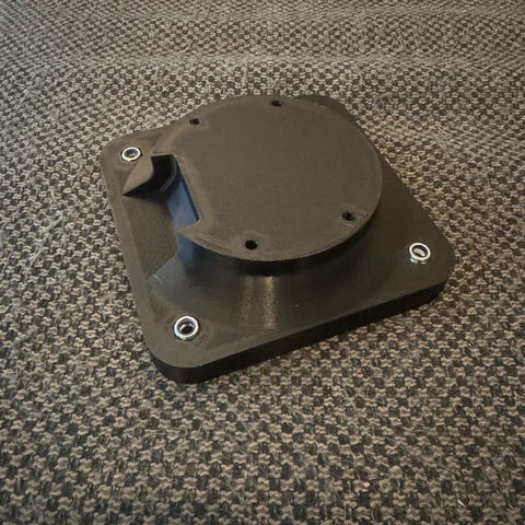 Adapteret er 3D-printet i kraftig filament (pla+) som fint tåler belastning.