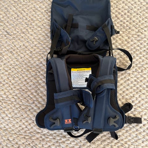 MiniMeis er en sammenleggbar skulderbærer som lar barnet sitte høyt og tett på den som bærer. Den passer godt til både bybruk og tur, og gir barnet god sikt og nærhet samtidig som du har armene fri.