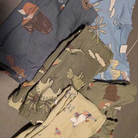 H&M shorts og T-skjorte for gutt i størrelse 134/140 Sett i myk bomull med flerfargede mønstre, blant annet figur- og dyreprint. Består av kortermede overdeler og korte bukser. Egnet som nattøy eller sommertøy eller behagelige koseklær hjemme.