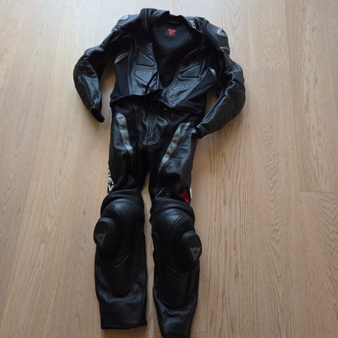 Pent brukt Dainese motorsykkeljakke til herre i svart med hvite detaljer, størrelse 52. Passer en S-M. Beskyttelse i skuldre og albuer. Følger med ekstra «varme»innlegg til den.