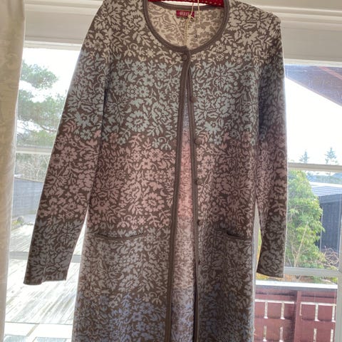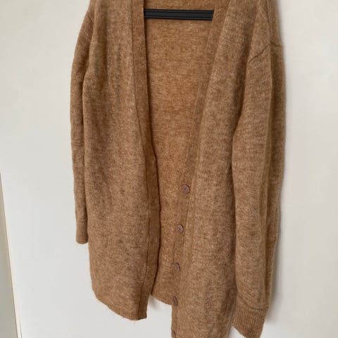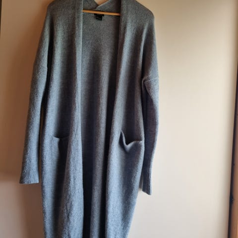 Lang strikket cardigan i bomull, akryl, polyamid og mohair