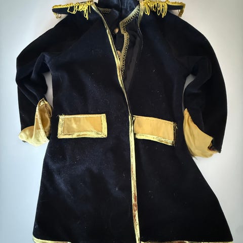Night kostyme i rød farge for barn, unisex og i one size. Kostymet er laget i 100 % bomull. Det har hette, lange ermer med nettingdetaljer som gir inntrykk av ringbrynje, og et stort skjoldmotiv med løve på brystet. Passer til utkledning, karneval eller rollelek. Vaskes for hånd ifølge vaskeanvisningen.