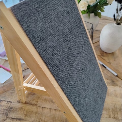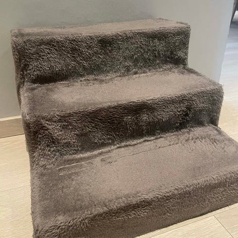 Lionto kjæledyrtrapp med plystrekk, i lysegrå farge. Trappen har tre trinn og måler ca. L 46 x B 36 x H 34 cm. Mykt plystrekk gir en behagelig overflate for kjæledyret. Egnet for små hunder og katter som trenger hjelp til å komme opp i sofa, seng eller lignende møbler. Kan plasseres innendørs på flate underlag. Helt ny. Min hund vil ikke bruke den.