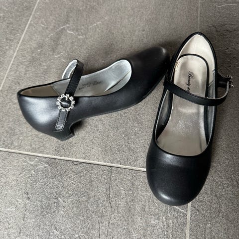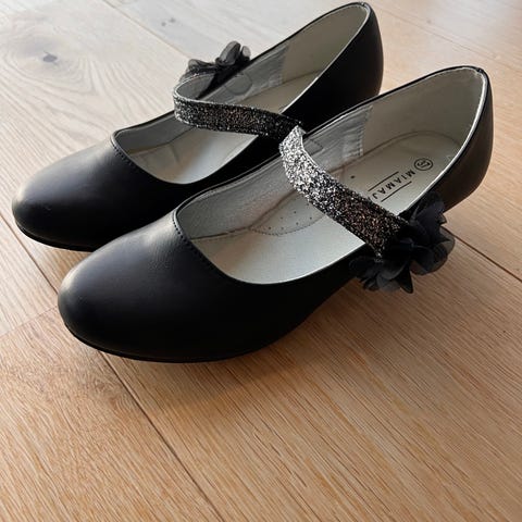Sorte, blanke pensko i «silke» str 36. Brukt kun et par ganger.