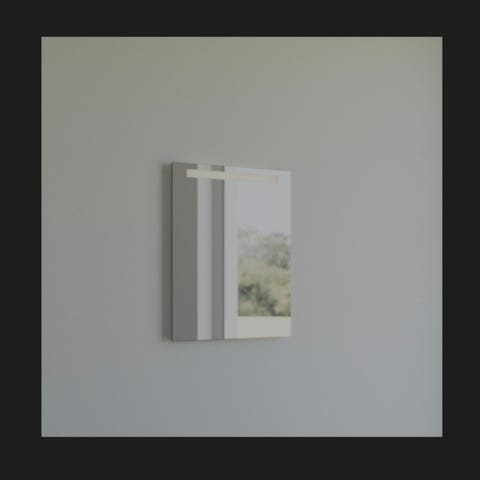 Baderomsspeil med integrert LED-lys. Skapet har hvit bakside og innvendige hyller i glass for oppbevaring av baderomsartikler. Passer til montering på vegg på bad eller vaskerom der det er behov for både speil og oppbevaringsplass med belysning. Har fått skader, se vedlagte bilder