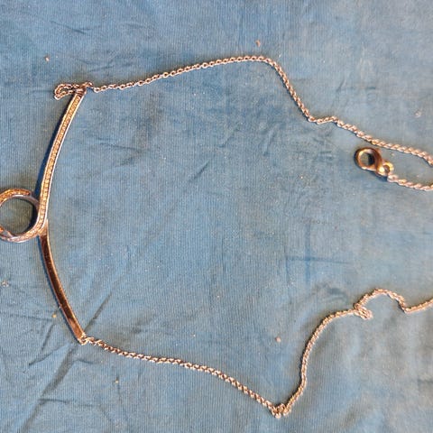 Åpent. (egne anheng) . Slangekjede, lengde: ca. 43 cm. Kuler- (2) og hjertepynt (1).