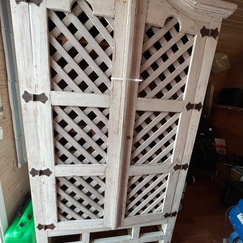 Pent brukt skap - ingen bruksmerker. Det følger med fire glasshyller og deksler til oppheng. Skapet har hengt på et bad. Vær oppmerksom på at skapet er hvitt høyglans.