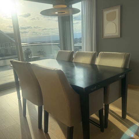 Pent og fint holdt kremkvitt spisebord med to klaffer på 50cm
