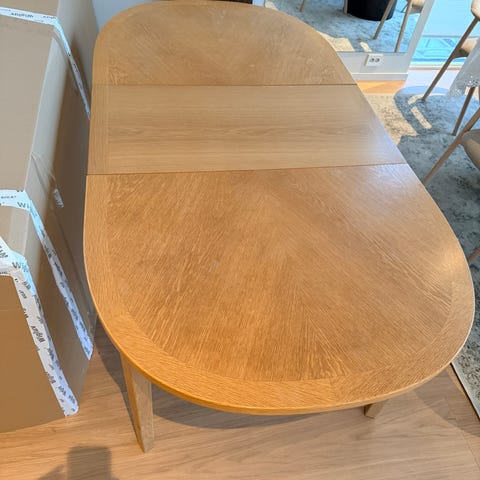 Marstrup spisebord med 2 innleggsplater 95x190x280 2,5 år gammelt natur eik ny pris 8200 selges for 3400 .