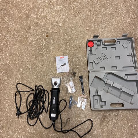 Bra klipper fra DeLaval for klipping av hest mm. Er rengjort og fungerer veldig bra. Selges i dag ny for over 6000 hos Felleskjøpet. Se vedlagte bilde. Ikke original koffert. To klippeblad medfølger, men de er ikke nyslipt. Bruksanvisning.