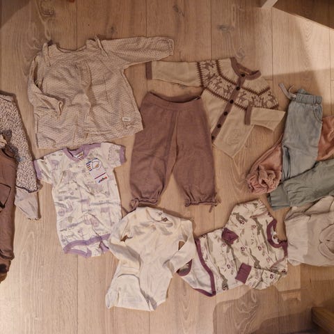 En fin klespakke til baby i str 62 selges. Noen av plaggene er i str 62/68.