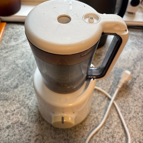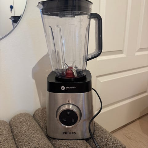 Tefal blender med glasskanne. Selges da vi fikk ny i gave. Nypris litt over 1000 kr. Blandepinnen har fått seg en liten trøkk.
