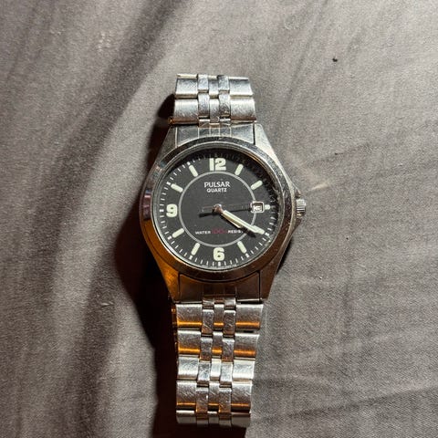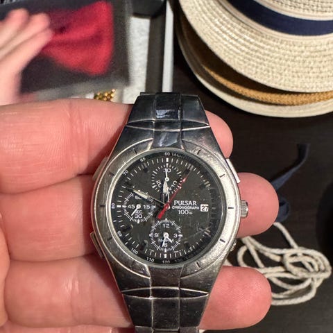Batteri er byttet. Reimen fungerer, men kan byttes over tid. Helt nydelig beste klokke , chronograph .