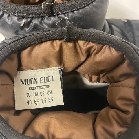 Moon Boot vinterstøvler i størrelse 40. Modellen er i svart farge med snøring foran og gummisåle.