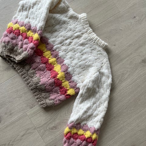 Ny ubrukt genser med Bobiler. Varm genser strikket i viking garn.