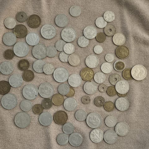 🔹 Inkluderer også en 1700-talls mynt (12 deniers, ca. 1779) – tydelig identifiserbar