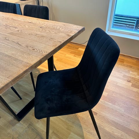Pent brukte spisestoler selges . 600- pr.stol (ny pris på Skeidar 1799,-) Må hentast hos selger.