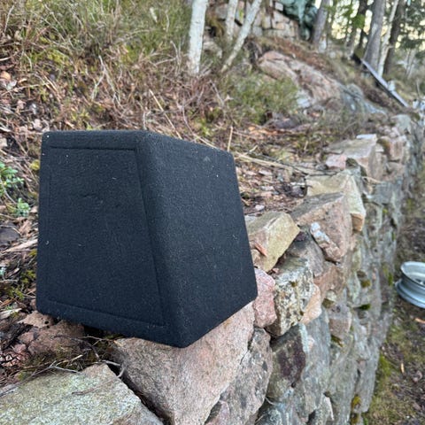 Ute høyttalere av god kvalitet tåler vann og kulde 2.1 med satelitter som plasseres ute i hagen koster ny ca 12000 kr. Bare å koble på forsterker inne i hus med ledninger ut .