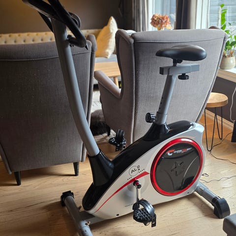 Sykkelen har justerbart sete og styre, pedaler med fotstropper og innebygd konsoll med display for enkel avlesning av treningsdata. Egnet til innendørs kondisjonstrening og oppvarming. Passer til hjemmebruk for voksne brukere. Basen har støtteben for stabilitet under bruk.