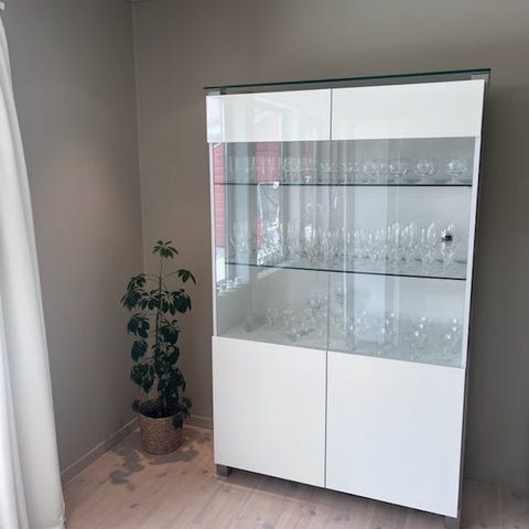 Bohus vitrineskap med skuffer og skapdører hvit