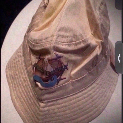 En lyseblå solhatt.