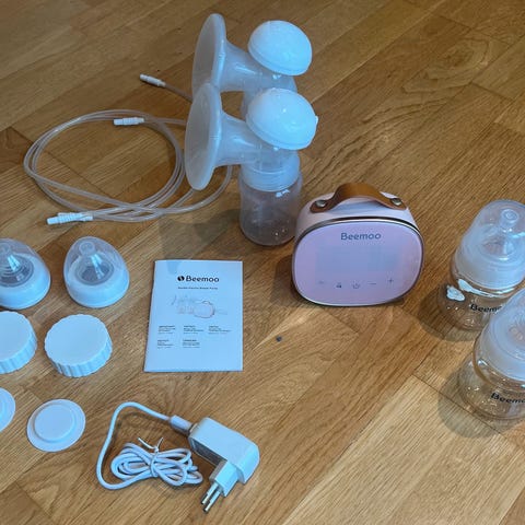 Brystpumpe fra beemoo selges, brukt i ca 14 dager, men har gått over til mme. Alt du ser på bildet følger meg!
