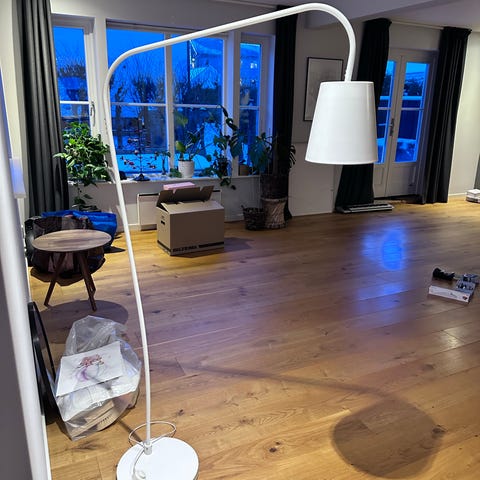 Selger en tøff og funksjonell IKEA Uppbo gulvlampe (Modell G1202). Dette er en moderne klassiker med et industrielt preg som passer perfekt som leselampe ved godstolen eller kontorpulten.