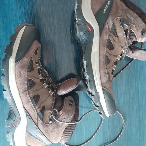 Goretex sko fra salomon str 43 1/3. Pent brukt, mye bruk igjen. Noe slitt på kanten øverst på skoen, ingen betydning for bruken. Selges kr 200.