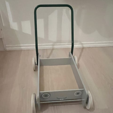 Svart gåvogn fra Brio. Her har minstemann hatt mye glede av denne kjekke gåvognen, men har nå vokst i fra den. Litt bruksmerker i malingen på vognen (se bilder), men har ingenting å si for bruken på vognen. Vognen fungerer som den skal☺️.