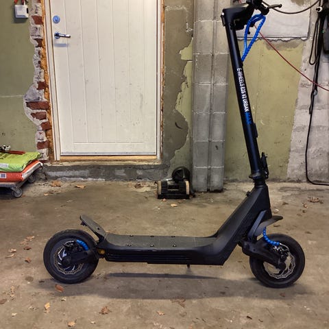 Hei, selger min urban max, den mangler et lokk med ladeporten,dette betyr at ladeporten ikke er festet siden det lokket mangler. Ikke farlig men bare nevner det. støtte og baksjerm, men den funker helt fint, er bare et par kroner i dele om du vill ha det men det trengs ikke, den er fullt kjørbar som den er