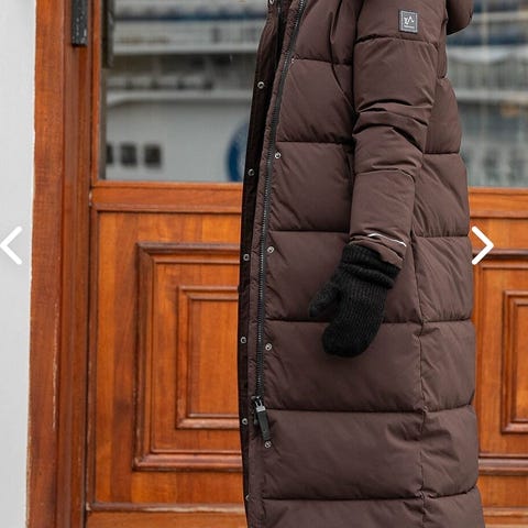 En lang og varm vest i mykt og matt materiale. Den er lett og varm. Den har fast hette, to-veis glidelås i front og sidelommer med trykknapper. Mulighet for justering i midjen for en perfekt passform. Oppleves mer som str. 40 enn 38.