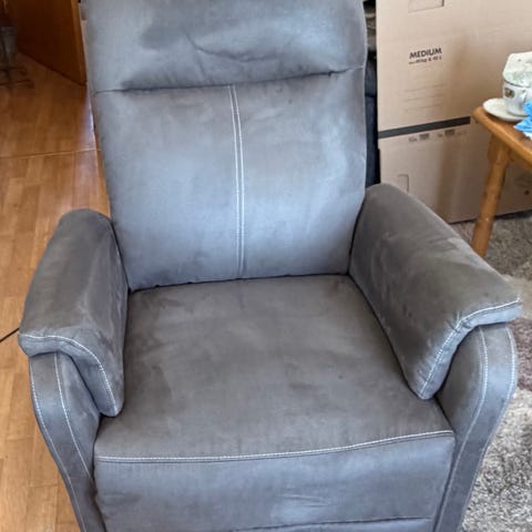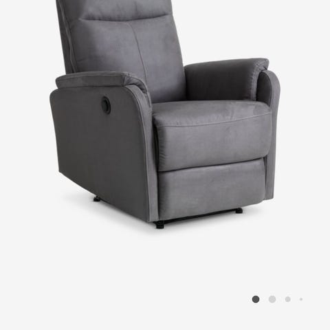 Selges pga. flytting, kjøpt for noen få uker siden. Jysk Abildskov recliner i grå imitert skinn. Elektrisk regulerbar lenestol med knapp på siden for justering av rygg og fothviler. Polstret sete, rygg og armlener gir støtte ved sitting og avslapning. Egnet som tv-stol eller lesestol i stue eller tv-rom. Må hentes snarest 🙈