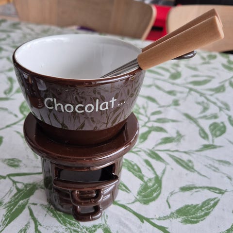 Jeg selger en liten sjokolade fontene som passer utmerket til sammenkomster med dem som liker sjokolade! 😁