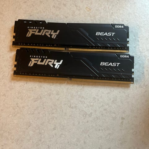 Kingston Fury Beast DDR4 RAM-modul i svart med kjøleribbe.
