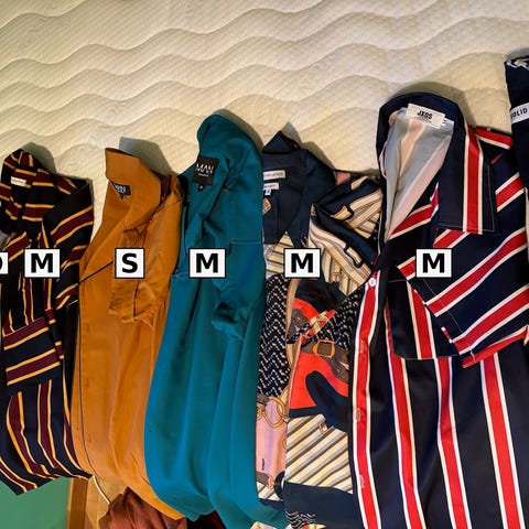 Klespakke Herreskjorter i størrelse L. Skjortene er i flerfarget mønster og laget hovedsaklig av bomull. Passer til hverdagsbruk eller mer formelle anledninger, og kan kombineres med både bukser og jeans.