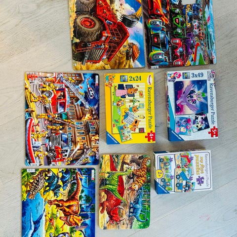 Alle puslespillene har barnevennlige motiver og store brikker tilpasset små hender.