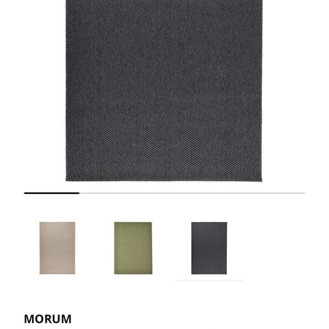 Selger akkurat åpnet og helt ubrukt morum gulvteppe fra IKEA. Veldig fornøyd med teppe i et annet rom men her passet det ikke som forventet til gulvet :) hentes i Sandefjord :)