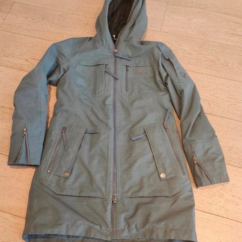 Eldre Norrøna ytterjakke for dame i størrelse S. Jakken er blå og laget i Gore-Tex-materiale med primaloft fill. Den har fast hette, hel glidelås i front og flere lommer med glidelås og knapper. Lengden går ned over hoftene for ekstra dekning. Innvendig er jakken vattert for økt isolasjon. Egnet som ytterjakke til hverdagsbruk og utendørsaktiviteter i vått og vindfullt vær. Passer perfekt i skibakken ved våt snø/vindfulle dager. Selges på grunn av lite bruk.