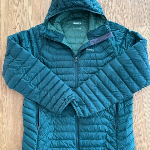 Selger Bergans Røros Down Light i størrelse XL med hette. Jakken fremstår som svært pent brukt og i god stand uten synlige skader.