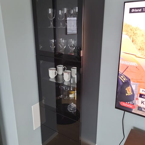 Vitrineskap selges billig grunnet utskiftning til nytt møbel. Glassene følger ikke med.