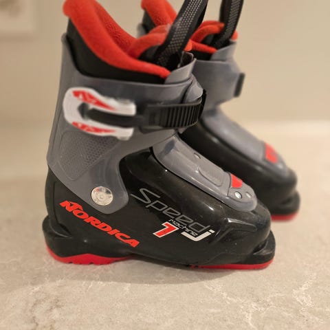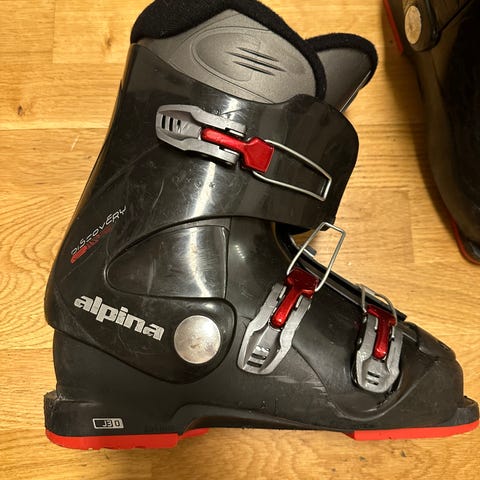 Alpina Discovery alpinstøvler for barn. Mondopoint 190, som tilsvarer ca str 30. Modellen har to spenner foran for enkel justering og god støtte rundt fot og ankel. Støvlene har polstret innersko for økt komfort. Enkle og gode støvler for små slalåmkjørere.