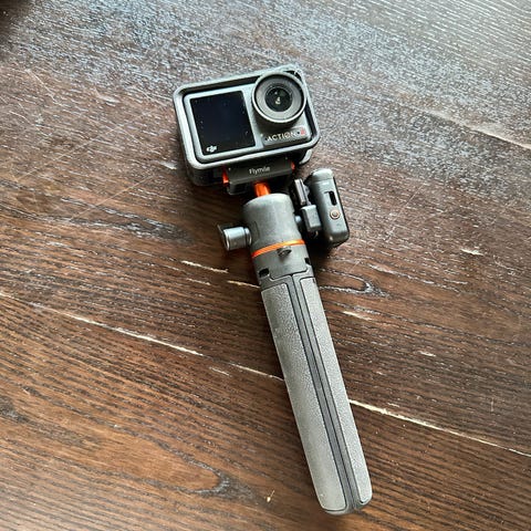 GoPro fjernkontroll og selfiestang. Ladekabel til fjernkontroll følger med.