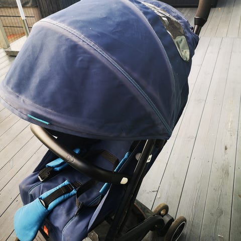 Barnevognen er veldig kompakt og praktisk for reiser, den tar ikke mye plass.