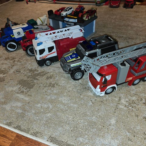 BRIO leker kjøretøy og aktivitetsleker i blandede farger. Pakken inneholder ulike typer småleker som biler, fly, verktøyleker, ratt og andre aktivitetsleker til barn. Lekene er laget i plast med ulike former og funksjoner som kan brukes til rollelek, bil- og flylek samt enkel motorisk trening. Egner seg som et variert utvalg leker til lek på leketeppe eller på gulv.