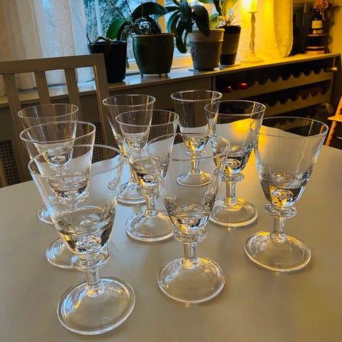 Kosta Boda «line» vinglass i klart glass. Veldig lite brukt. Ingen skader.