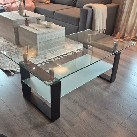 Pent sofabord i glass