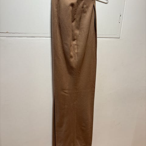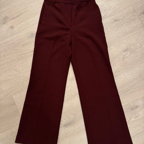 b.young bukse for dame i størrelse 36. Buksen er brun og laget i polyester. Modellen har rette, vide ben og klassisk lukking med glidelås og hemper i livet. High waist.