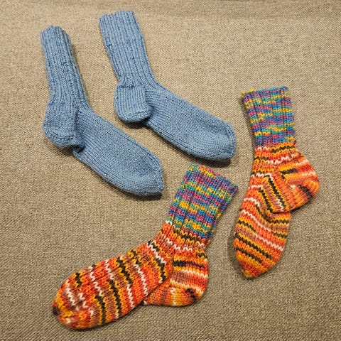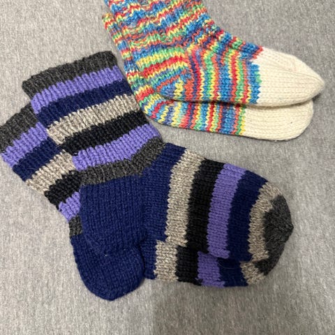 2 par Hjemmestrikkede sokker str ca 6-8 år 50kr pr par