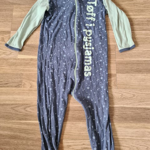 Name it pysjamassett for barn i str. 98, unisex. Sett med langermet overdel og bukse. Overdelen er lys med mørke trykk og mønster, buksen er ensfarget mørk. Materiale i bomull. Egnet som nattøy for barn rundt 2–3 år.